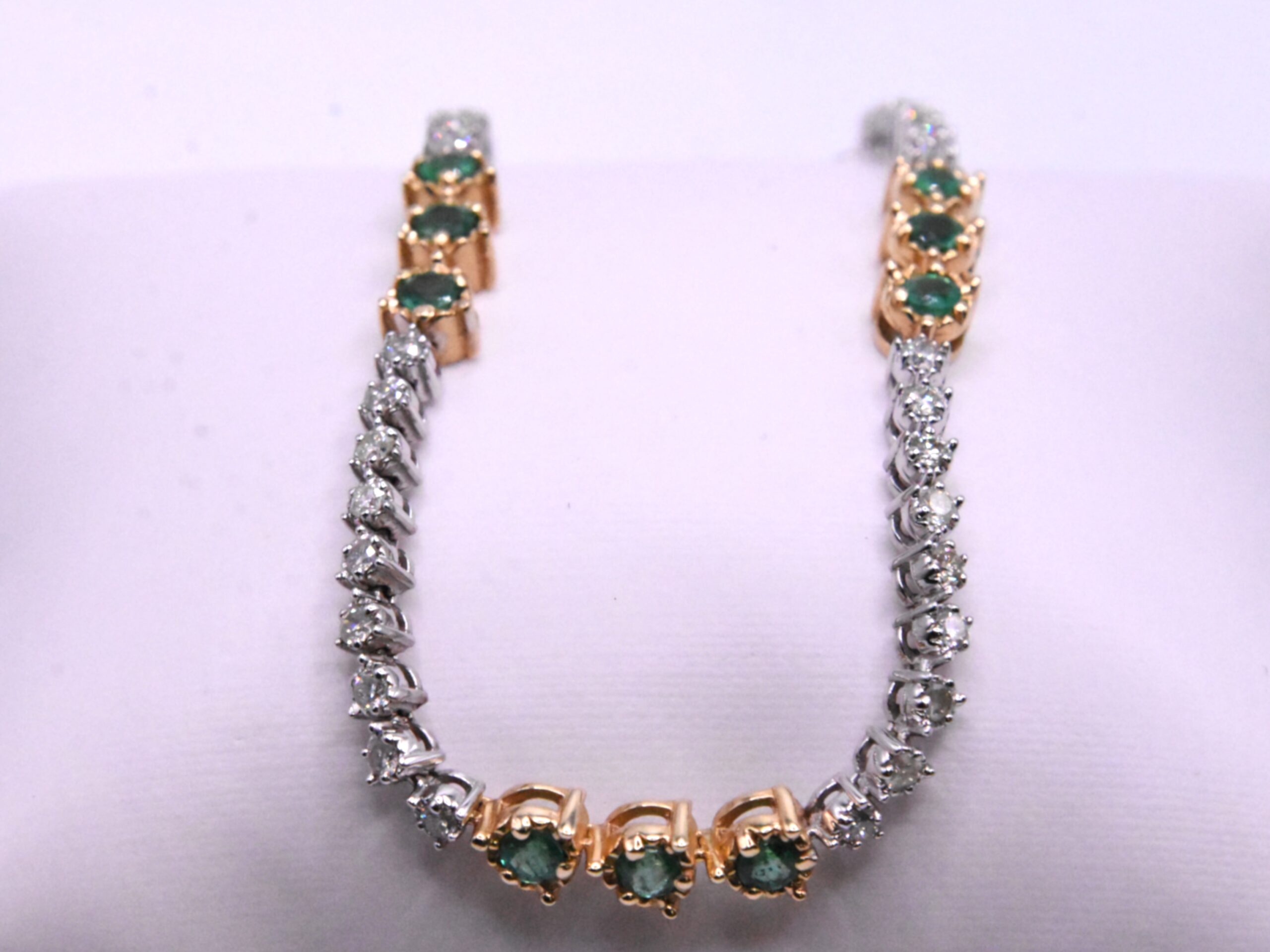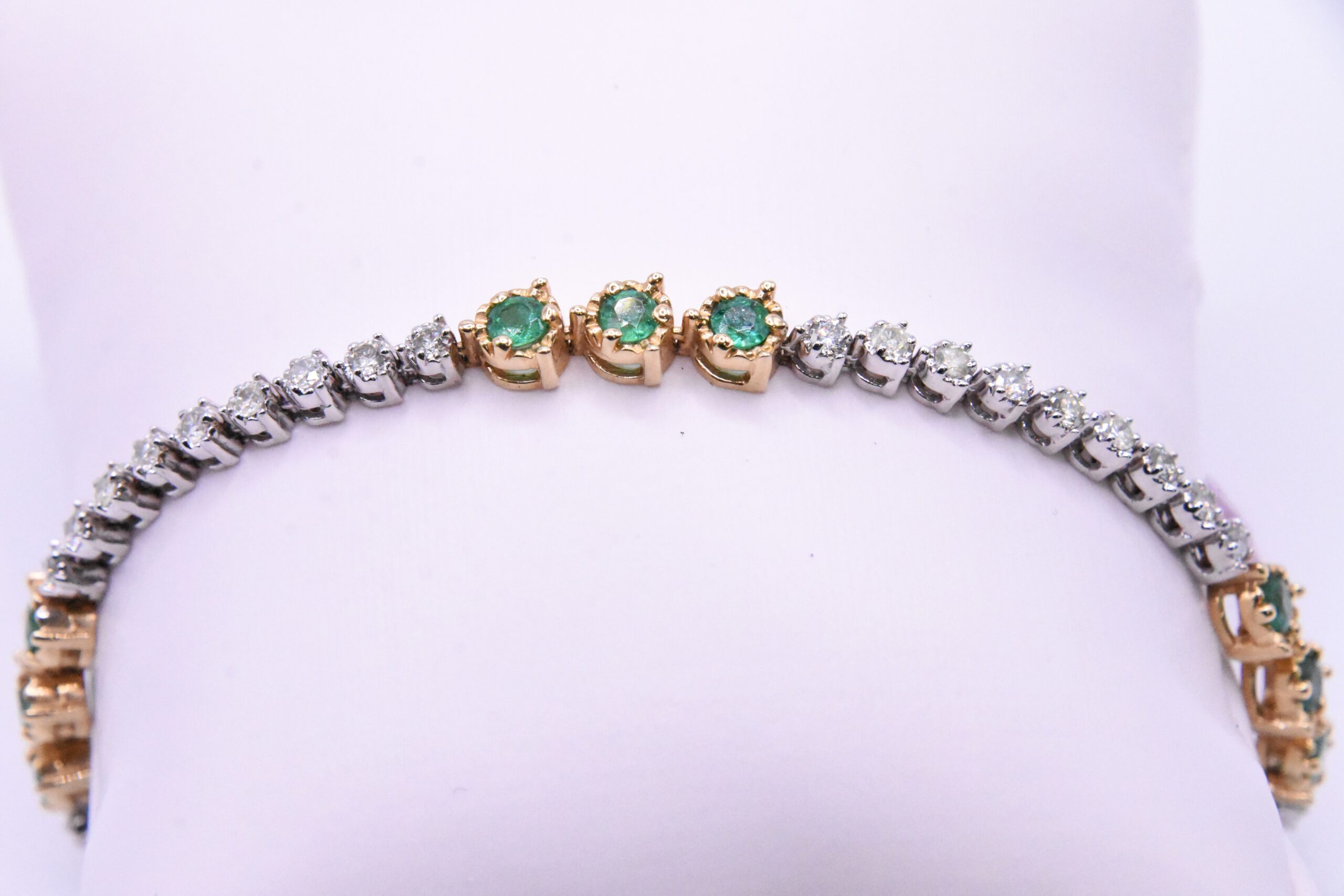 Emerald & Diamond Tennis Bracelet – 14K White & Yellow Gold