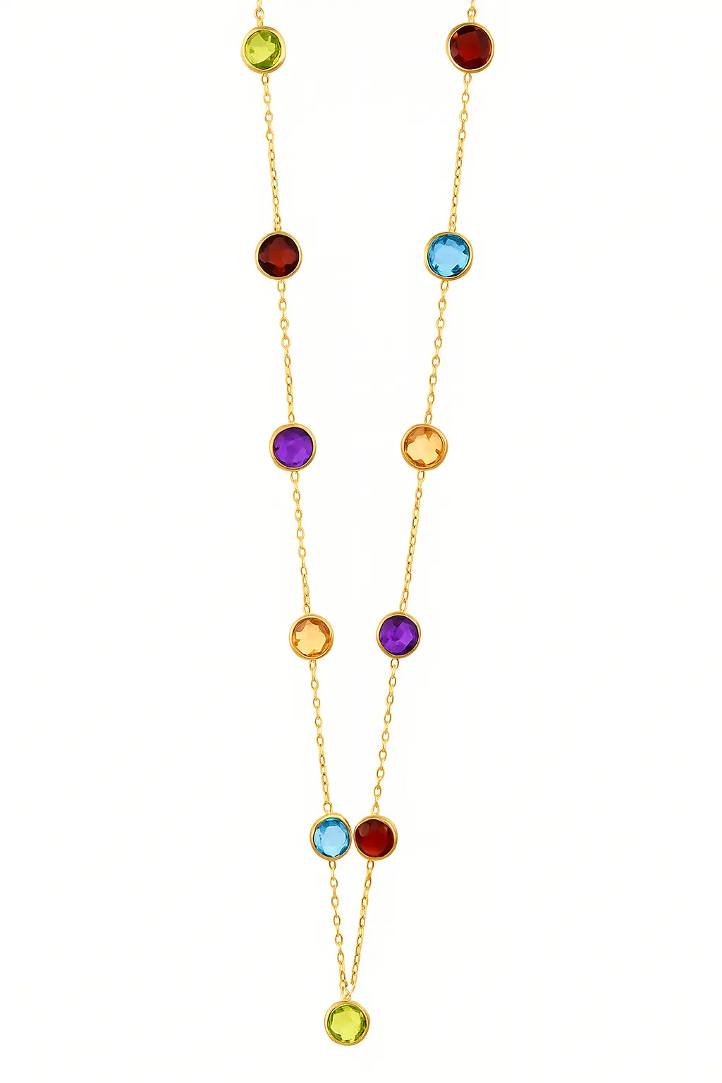 Multi-Color, Natural Round Gemstone Necklace crafted of 14K Gold
