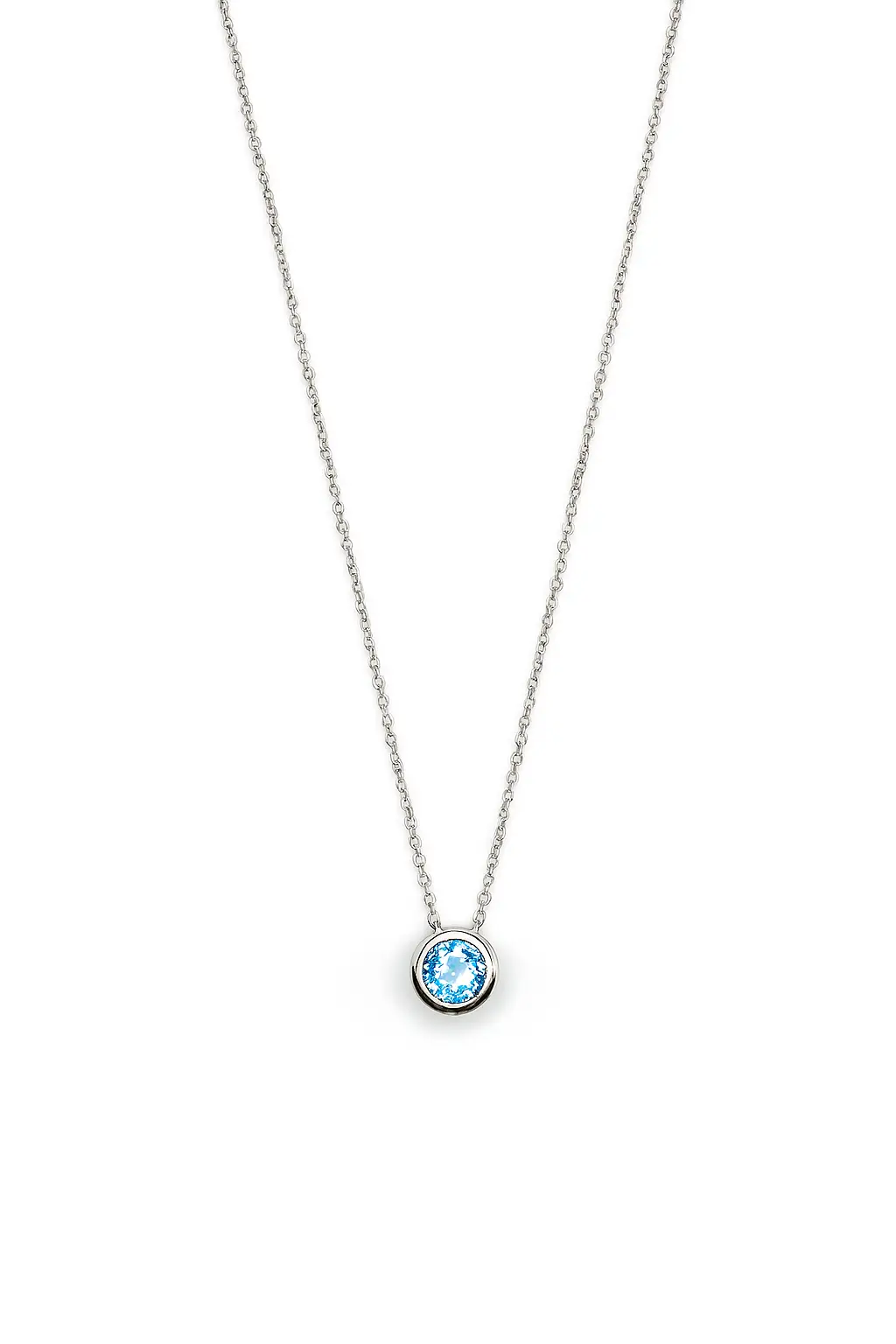 Round Blue Topaz, Bezel set crafted of 14K White Gold. TCW: 1.0